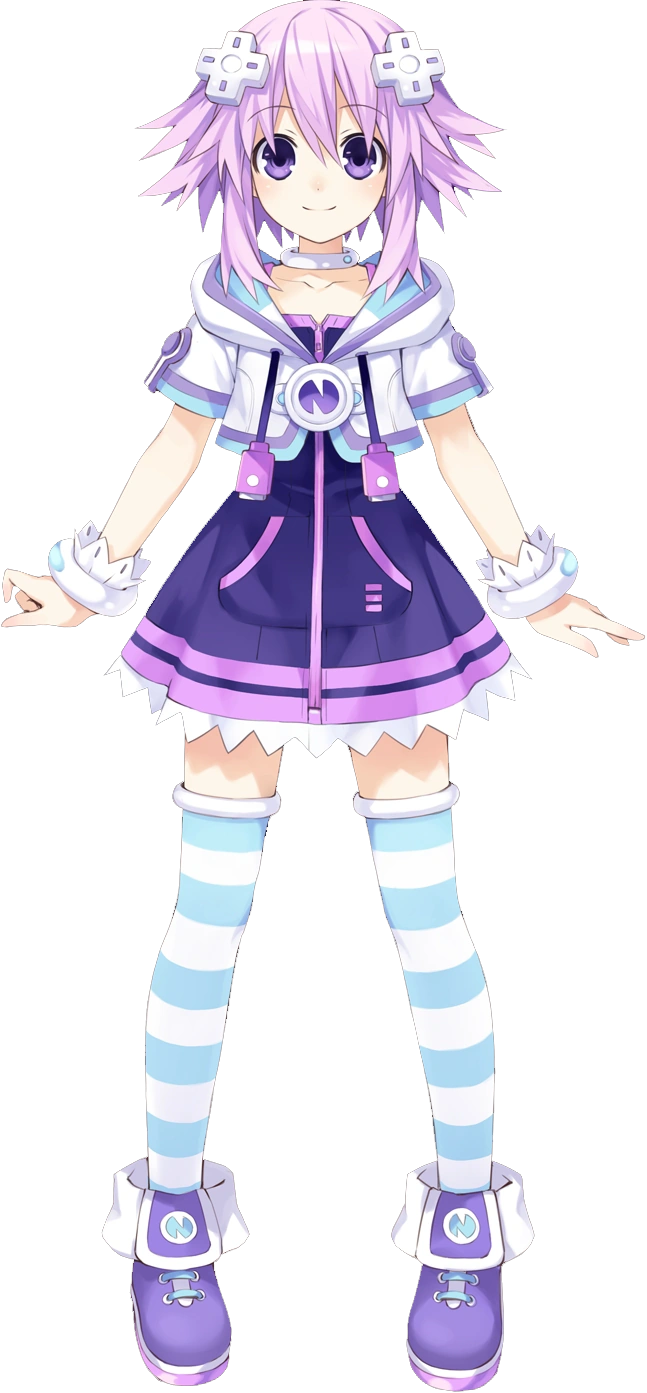 Neptune(ネプテューヌ Neputyūnu) is the human form of Purple Heart, the CPU of Planeptune, and also the main protagonist in Hyperdimension Neptunia who loses her memory after a terrible fight and is banished to Gamindustri. After crash landing, Neptune finds herself in the home of the nurse in training, Compa. Now she must try to rally the other Goddesses and fellow party members to come aid her in defeating the evil goddess, Arfoire.